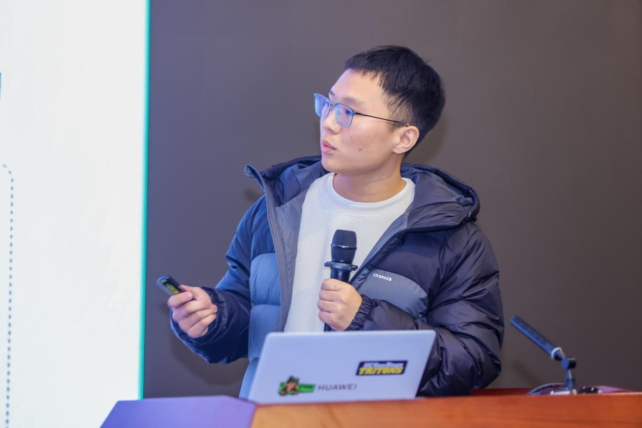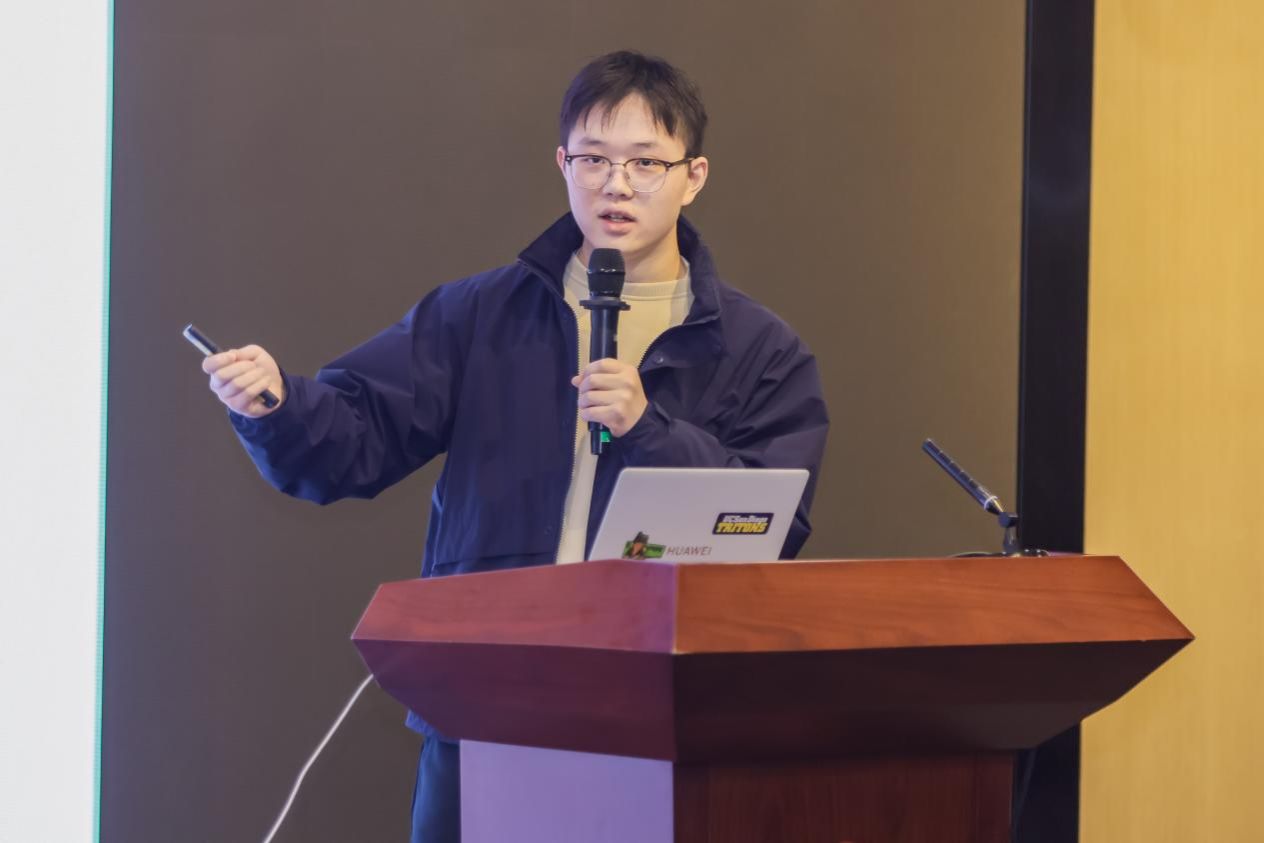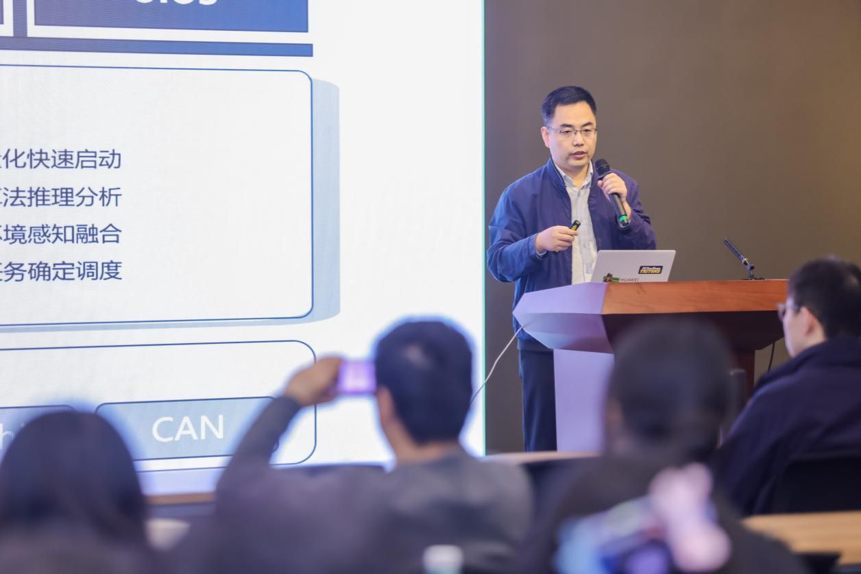 西北工业大学硕士沈铭分享了《面向具身智能的异构感算融合资源协同实时调度》的研究成果。团队提出了一套支持“感算融合”的具身智能操作系统框架,通过感知资源智能选择机制、实时资源调度机制和新型微内核架构,解决了机器人系统中感知、计算与执行资源的协同调度难题。该架构基于Rust语言开发轻量级Hypervisor,支持多平台混合部署,并通过AirSim+UE4半实物仿真平台验证了其在能耗降低与识别准确率方面的优势。