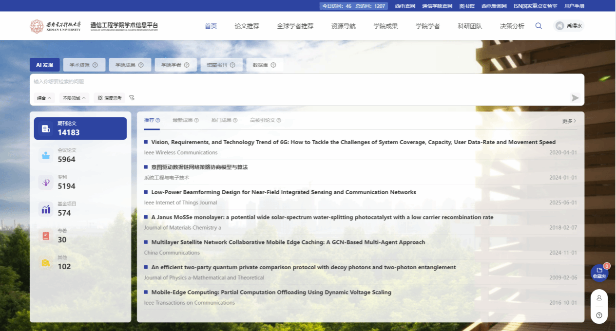 平台聚焦通院学科特色与发展需求,首期即整合了海量多元学术资源,以学校图书馆已购资源为基础,同时聚合了各类开放获取资源。具体包括外文期刊3000余种、外文图书4万余种、中文期刊近1000种、会议录5万余种,覆盖期刊论文、会议论文、图书专著、专利文献、资讯头条等多种类型,初步构建起一个体系化的学科知识库,为师生开展创新性研究筑牢知识根基。